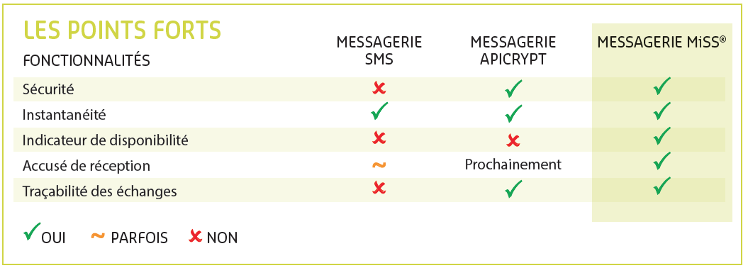 L'immédiateté des échanges entre les praticiens qu'offre la MiSS® correspond aux besoins et exigences du travail pluriprofessionnel et complète, ainsi, l'offre des services de l'APICEM dont l'objectif premier demeure la promotion de la communication entre les professionnels de santé.